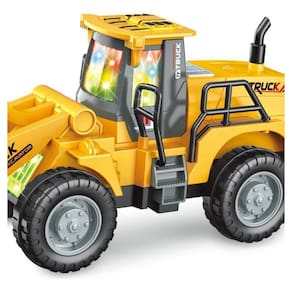 Movimento bump 'n go: movimenta-se automaticamente em várias direções ao encontrar obstáculos, garantindo uma brincadeira mais interativa e divertida. Com efeitos de luzes brilhantes, coloridas que iluminam a cabine, tornando a brincadeira ainda mais realista, especialmente em ambientes com pouca luz. O design robusto e os detalhes das rodas e da estrutura fazem desse trator uma réplica incrível, ideal para pequenos fãs de construção. Possui pá que se move para cima e para baixo, permitindo às crianças simularem operações de carga, estimulando a imaginação.