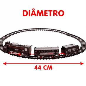 • Dimensões aproximadas: Trilho 44cm De Diâmetro x Trem Altura 5cm x Comprimento 35cm