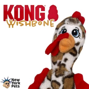 KONG Wishbone é um brinquedo indicado para cães de mordida leve a moderada. Possui um formato perfeito para brincadeiras de jogar e trazer e chacoalhar, assim como algumas lutas. Possui uma corda pelo seu corpo o que o torna mais resistente para brincadeiras de cabo de guerra. A corda também satisfaz instintos naturais dos cães. Possui um apito para aumentar o estímulo.