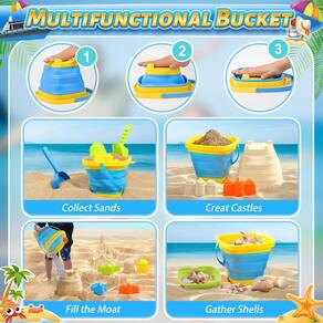 Brinquedos de areia de praia para crianças, brinquedos de areia dobráveis com saco de malha de balde de areia, pá de areia grande, brinquedos de castelo de areia para praia, brinquedos essenciais de praia para crianças, acampamento, férias ao ar livre, viagem na praia - Colher de areia grande e colher de areia com filtro: inspire a diversão e a criatividade do seu filho com nosso conjunto de brinquedos de areia de praia dobráveis de 16 peças. Feito para brincar na areia, adicionamos uma colher de areia grande e uma colher de areia de filtro ao balde dobrável autêntico e acessórios de bolsa de malha. eles adicionam uma camada extra de emoção às explorações criativas do seu filho. trará horas de diversão para meninas e meninos brincarem com areia - Bolsa de malha conveniente: você receberá um saco de areia que pode facilmente sacudir a areia e é fácil para os brinquedos de praia das crianças carregarem. A bolsa de malha oferece uma solução conveniente para armazenar e transportar vários brinquedos de praia. Mantenha os brinquedos de areia organizados e facilmente acessíveis, evitando qualquer bagunça desnecessária. Perfeito para todas as viagens na praia. Você experimentará mais conveniência com estes brinquedos de areia de praia - Balde dobrável e colher de areia com filtro: o conjunto de brinquedos de areia de praia está equipado com itens essenciais, como baldes dobráveis, moldes e capa de pá de malha de filtro adicional para coletar conchas. Todos os moldes e ferramentas de areia são feitos em cores brilhantes e formas fofas, incentivando as crianças a usarem sua criatividade para fazer seus castelos de areia na praia - O pacote inclui: Nosso kit de brinquedos de areia para crianças contém 1 x balde grande dobrável, 1 x pequeno balde dobrável, 1 x saco de areia de rede, 1 x regador, 4 x ferramentas de pá e ancinho, 4 x moldes de castelo, 12 x moldes de animais. Permite que as crianças construam vários castelos de areia, pode satisfazer várias crianças brincarem juntas ao mesmo tempo, permitindo que seus filhos brinquem na praia o quanto quiserem - Presente extraordinário para crianças na praia: este conjunto de brinquedos de areia é adequado para uso externo e interno na praia, piscina, jardim, quintal, etc. Pode melhorar a capacidade prática das crianças e estimular a criatividade, você também pode brincar com seus filhos e aumentar a interação entre pais e filhos. É um presente especial para viagens na praia ao ar livre, presentes de aniversário para crianças, presentes de festa