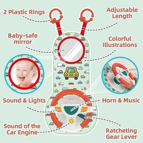 Brinquedos de assento de carro de bebê com espelho podem ser facilmente instalados em hastes de encosto de cabeça de assento de carro, carrinhos de bebê, cadeiras de balanço, berços, guarda-corpos, etc. Com anel ajustável, adequado para bebês de diferentes idades e cenários de uso. O brinquedo do banco do carro de condução multifuncional tem um volante e uma alavanca de engrenagem de catraca, um espelho de segurança para bebês, 3 sons e luzes, buzinas e música e ignição do motor. Thecarseat brinquedos para bebês 0-6 meses é projetado como um centro de jogo de carro, que pode entreter o bebê enquanto os pais estão dirigindo. Os pais não precisam mais se preocupar com o choro do bebê, porque eles têm um brinquedo interessante na viagem. Os bebês desenvolvem imaginação e habilidade prática, imitando as ações do motorista. Girar o volante e a alavanca de câmbio e pressionar vários botões ajuda a desenvolver as habilidades motoras finas das crianças e a coordenação olho-mão. O primeiro brinquedo de volante de presente de aniversário de Natal para o bebê de 0 a 12 meses pode ajudar os bebês a explorar e aprender à medida que crescem. Todos os produtos de nós foram submetidos a rigorosos controles de qualidade.se houver algum problema de qualidade ou você não está satisfeito com o productcontact us.we lhe daremos a melhor solução.