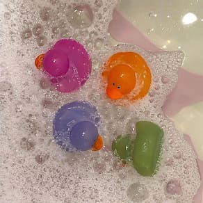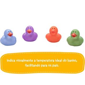 Mudança de Cor com a Temperatura da Água: Indica visualmente a temperatura ideal do banho, facilitando para os pais.