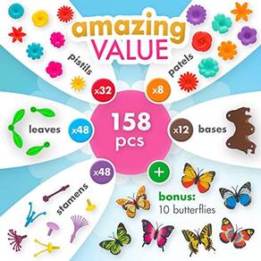 Brinquedos de Construção de Jardim de Flores para Meninas e Meninos [Idade 3–6] – Conjunto de Brinquedos de Construção de Flores de 158 Peças com Boletas, Flores, Hastes, Bases – Construa um Brinquedo STEM de Construção de Flores de Jardim para Presentes de Menina de 3 Anos de Idade