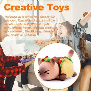 AVISO: Este produto pode conter pequenas peças, que são um risco de asfixia. Sugestão de supervisão de adultos. 1. Material Premium: Preenchido com enchimento de algodão PP, feito de fio de seda amigo da pele e pelúcia macia, dando-lhe uma melhor sensação de pele. Este divertido jogo de pelúcia é adequado para todas as idades. Acabamento perfeito, durável e longa vida útil.2. Libere a pressão: Aperte a pelúcia macia para liberar a pressão. Como uma decoração de casa, encha sua casa de amor e calor. Este produto é um brinquedo de pelúcia colorido, mais elegante e bonito, seguro e saudável.3. Tamanho adequado: Este brinquedo tem cerca de 25 cm de comprimento, feito de pelúcia macia de alta qualidade e preenchido com algodão de alta qualidade. Muito macio e confortável para as crianças abraçarem. Não é apenas um chaveiro de pelúcia, mas também um brinquedo de RPG.4. BRINQUEDOS CRIATIVOS: Este brinquedo de pelúcia é perfeito para uma prateleira no quarto do seu filho. Independentemente da idade, ainda é o presente mais doce e fofo para meninos, meninas, crianças, amigos, aniversários, Dia das Crianças, Halloween, Ação de Graças, Dia dos Namorados, Natal e muito mais.5. Grande presente: Este brinquedo de desenho animado permite que você traga para casa um gato bonito. Suprimentos de animais de estimação modernos de brinquedo lindamente projetados. A forma fofa é amada pelas crianças. É o presente perfeito para um amigo, uma namorada ou um pequeno.