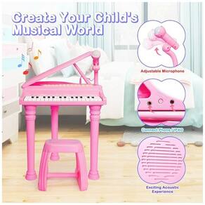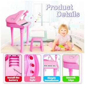 Tom maravilhoso e multifuncional Excelente brinquedo de piano para meninas produz um tom maravilhoso, permite que você e seu bebê mergulhem no mundo da música Este piano infantil para crianças tem 31 teclas, inclui 8 instrumentos de percussão, 4 instrumentos musicais, 4 estilos de acompanhamento, 3 modos de guia, 22 músicas de demonstração, função de reprodução de gravação e volume e ritmo ajustáveis Pode proporcionar muita diversão para as crianças For Great Fun MP3 hole pode conectar telefone, ipad, computador e MP3 para ser um player Este teclado de piano para bebês para crianças vem completo com um microfone removível para cantar junto e um banco redondo correspondente Conectando o microfone e o banquinho, as crianças podem cantar enquanto tocam piano infantil Iluminação suave e música terão um efeito de palco com música que aumenta a diversão da criança Modo Aprenda a Tocar Inclui 3 modos de guia que permitem que as crianças aprendam a tocar uma música inteira enquanto acompanham as luzes vermelhas no teclado do piano infantil Seu filho pode gravar a si mesmo e reproduzir suas próprias belas melodias com controles de volume ajustáveis ??Material seguro e fácil conectividade Plástico ABS seguro e bordas lisas, que podem evitar que as crianças se machuquem Os brinquedos de piano para crianças de 3 anos podem ser alimentados por 4 pilhas AA não incluídas Alimentado por bateria, para que seus filhos possam tocar piano ao ar livre sem se preocupar em encontrar energia e seus filhos possam brincar o quanto quiserem Presente perfeito para crianças O piano infantil com múltiplas funções de microfone não apenas ajuda as crianças a aprender a cantar, mas também ajuda as crianças a construir melhor autoconfiança e torna mais fácil para elas enfrentarem atividades escolares futuras sem se sentirem muito nervosas Este piano de brinquedo para crianças de 3 anos é um ótimo brinquedo de desenvolvimento para crianças de 3 anos Marca: Não Informado