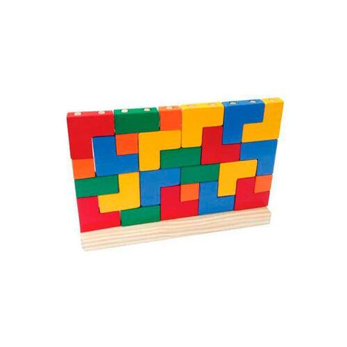 Confeccionado em madeira, com a sua base medindo 32x21x6,5cm, contendo 25 peças em formatos diferentes. Propicia diversos tipos de brincadeiras divertidas.