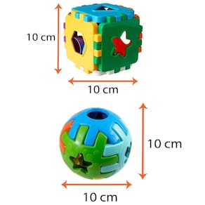 MEDIDAS: - Cubo: 10 x 10 cm - Bola: 10 cm