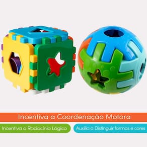 KIT COM 2 BRINQUEDOS: 1 Cubo Didático 1 Bola Didática