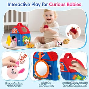 - Conjunto de brinquedos multissensoriais - cada um dos 7 animais de fazenda macios esconde um som único – papel enrugado, jingles suaves ou ruídos divertidos – para despertar a descoberta auditiva. O espelho de celeiro interativo estimula a autodescoberta – perfeito para o desenvolvimento cognitivo. Os bebês aprendem causa e efeito enquanto desenvolvem habilidades motoras apertando, agitando e abraçando.