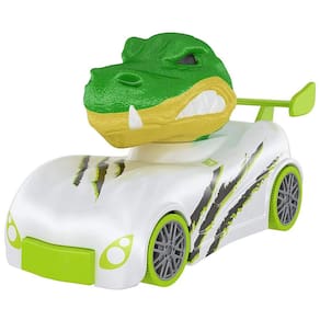- O CHOQUE DE BARBATANAS E FÚRIA: Quando o dinossauro Rex encontra Finn, o tubarão, apenas um mantém a cabeça; recua, mira e esmaga seu rival; a cabeça do perdedor aparece a 30 cm de distância de forma épica, conjunto de 2 carros de corrida