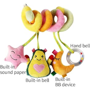 Material de pelúcia confortável: A superfície é feita de material de pelúcia de alta qualidade, que tem um toque confortável Desenvolver visual e capacidade de áudio do bebê: Ajuda a desenvolver os sentidos e habilidades motoras do bebê. Com a forma fofa e o squeaker BB embutido, o bebê será atraído e se divertirá com este brinquedo de berço Amplamente utilizado: É fácil espiralar os brinquedos de bebê adoráveis no cer de cadeirinha infantil, carrinho de bebê, bar de carrinho de berço, trilhos de berço, carrinho de compras alças Bom presente: Um brinquedo perfeito para meninas e meninos, dê-o como um presente especial para chás de bebê, aniversário, Dia das Crianças, Natal e ano novo Fácil de embrulhar: Facilmente envolve em torno de bar de carrinho ou lado do berço sem assedo