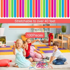 100 peças de brinquedos sensoriais elásticos Fidget Strings —?Presente divertido?Um brinquedo sensorial elástico Fidget Strings é o presente ideal para familiares e colegas de classe, que esquecerão suas preocupações com a vida e aliviarão a pressão após o trabalho -?Pacote econômico?Este pacote inclui 100 brinquedos sensoriais elásticos Fidget Strings, 18 x 0,4 cm/7,1 x 0,2 polegadas, com quantidade suficiente e cores ricas para atender às necessidades e preferências de diferentes grupos de pessoas -?Você vai gostar destes?Eles são muito divertidos de brincar, se esticam livremente e podem ser tecidos em várias formas usando eles. Quando estiverem sujos, você pode lavá-los com água e sabão -?6 cores?amarelo, verde, roxo, laranja, rosa e azul, muito brilhantes e bonitos -?Material seguro?O brinquedo elástico é feito de material TPR, resistente e inodoro, lavável e reutilizável, não é fácil de quebrar ou desbotar, o que é seguro para adolescentes e adultos aplicarem