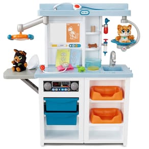 Brinquedos veterinários Little Tikes para crianças - My First Pet Doctor Checkup Pretend Play Set Veterinarian Playset - Mais de 15 acessórios, clínica médica veterinária interativa multicolorida - CLÍNICA VETERINÁRIA INTERATIVA: esta estação veterinária simulada de dramatização médica tem características como uma balança de jogo ajustável funcional; luz de exame suspensa; um balcão de exame dobrável; estação de raio-x e muito mais. Presente de brinquedo médico para crianças, meninos e meninas. - CARACTERÍSTICAS DE DESTAQUE: A estação de raio-x embutida tem 3 lâminas translúcidas de “raio-x” que podem ser desenhadas (marcador incluído). Este conjunto Pet Checkup é um ótimo complemento para qualquer sala de jogos e seria um presente de aniversário ou Natal para crianças que amam animais! - DIVERSÃO E EDUCAÇÃO: Este conjunto de brinquedos veterinários ajuda a desenvolver habilidades de resolução de problemas e promove empatia por meio de dramatizações imaginativas e veterinárias. Aprenda a cuidar de animais de estimação, usar ferramentas e aprimorar a criatividade enquanto se diverte. - ESPAÇO DE ARMAZENAMENTO EMBUTIDO: Existem 2 caixas e 2 camas para animais de estimação onde as crianças podem guardar os animais de estimação e acessórios incluídos. Fizemos nosso conjunto de brinquedos para crianças de forma resistente e ecológica, durável e seguro para seus filhos brincarem. - O conjunto PET CHECKUP INCLUI: Mais de 15 acessórios veterinários fingidos: filhote Rescue Tales Yorkie, gato malhado Rescue Tales, tartaruga, bandagem, injeção de reforço, estetoscópio, medidor de pressão arterial, otoscópio, 3 'raios-X', cone para animais de estimação, 2 camas para animais de estimação, tigela, osso e marcador de raio-X
