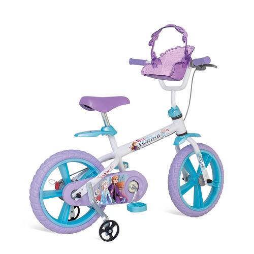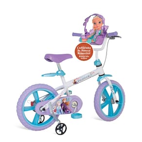 Altas aventuras esperam as crianças com a Bicicleta Aro 14 Bandeirante Frozen II. Ela é confeccionada em aço carbono resistente com decoração moderna da personagem Frozen e muito descolada. Possui rodinhas laterais que auxiliam nas primeiras pedaladas e depois podem ser removidas com facilidade.