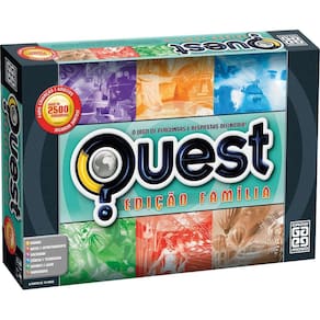 Jogo de tabuleiro Quest Edicao Familia Grow Quest é o novo jogo de perguntas e respostas da Grow. Na edição família são 2520 perguntas de conhecimentos gerais, divididas em 2 baralhos diferentes: um para crianças e outro para adultos Assim, crianças e adultos podem testar seus conhecimentos, cpetindo de igual para igual o s outros jogadores. Quest. O jogo de perguntas e respostas definitivo. Tamanho: 28 cm(C) x 8 cm(L) x 41,5 cm(A)