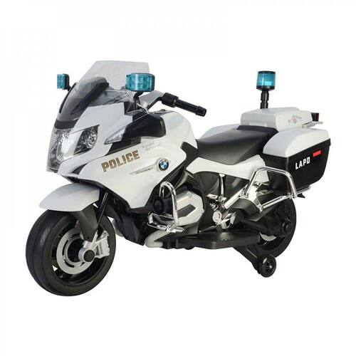 Aceleração progressiva. Três velocidades. Painel com luzes. Chave liga/desliga com som de motor. Indicador digital de bateria. Giroflex com som, luzes e botão de controle. Música, som de polícia, buzina. Seta com luzes e som. Rodas laterais de apoio. Baú na traseira. Idade: +3 anos. Peso máximo suportado: 30kg