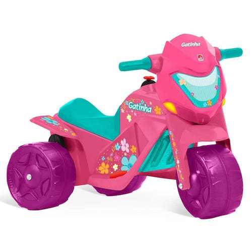 Descrição | Moto Elétrica 6V - Gatinha da Bandeirante vai proporcionar momentos super radicais para as pequenas! Sinônimo de diversão, a Mini Moto Elétrica - Ban Moto Gatinha foi desenhada para ser fofa e bonitinha, como toda menina adora! Robusta, com rodas grandes, é muito bonita, além de super segurar para as meninas! Atinge aproximadamente 3,5 km/h, uma velocidade que mantém a segurança ao mesmo tempo que deixa a brincadeira emocionante e super divertida! O câmbio permite passar até duas marchas - frente e ré. |