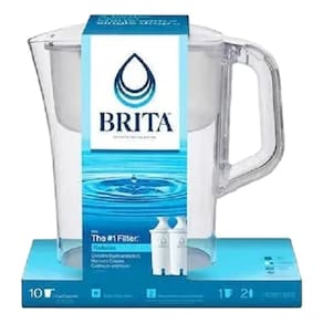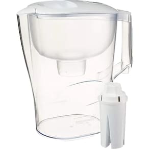 Jarra de água Brita para 10 copos com filtro avançado, reduz o cloro, cobre, cádmio e mercúrio. Design ergonômico, tampa articulada e indicador eletrônico de filtro.Função retrolavagem