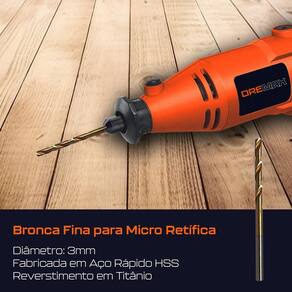 - Marca: Dremax - Referência: BRC003 - Diâmetro: 2mm - Comprimento: 48mm - Fabricadas em Aço Rápido HSS - Revestimento em titânio - Totalmente Polidas - Indicada para furação de todos os tipos de Madeira, MDF, Plástico, Acrílico, Alumínio e outros Metais Macios - Indicado para micro retíficas de qualquer marca, desde que possua mandril ou pinças que suportem pegar todos os diâmetros do kit - Brocas de alta qualidade para artesanato, indústria, etc. - Garantia: 90 dias contra defeitos de fabricação Marca: Dremax