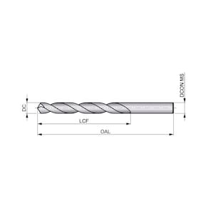 Broca com haste paralela, diâmetro 1.5mm com um comprimento total de 40mm e comprimento útil de 18mm de acordo com padrão DIN 338 com ponta cônica 118°, feita em HSS com acabamento brilhante para furação sem guia 4xD em aço.