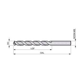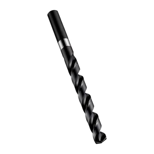 Broca com haste paralela, diâmetro 6mm com um comprimento total de 93mm e comprimento útil de 57mm de acordo com padrão DIN 338 com ponta com afiação em cruz 135°, feita em HSS com acabamento revenido à vapor e hélice rápida para furação sem guia 4xD em aço inoxidável.