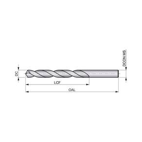 Broca com haste paralela, diâmetro 8mm com um comprimento total de 117mm e comprimento útil de 75mm de acordo com padrão DIN 338 com ponta com afiação em cruz modificada 118°, feita em HSS com cobertura TiN-tip para furação sem guia 4xD em aço