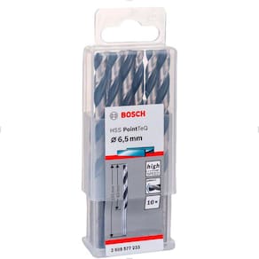 A Broca para Metal de aço rápido HSS-PointTeQ proporciona alta velocidade de perfuração devido ao desenho da sua ponta com tecnologia Bosch. Sua ponta centralizadora (Split Point) dispensa pré-furo ou punção inicial permitindo início rápido e fácil de perfuração evitando desvios no material. Com execução de perfurações rápidas a broca HSS-PointTeQ gera menos calor e consequentemente menos desgaste. Traz alto rendimento e maior número de perfurações até o fim de sua vida útil. A Broca possui um corpo com alta elasticidade que diminui o risco de quebra, além de possuir óxido negro em sua espiral facilitando uma saída rápida dos cavacos. Fabricada com corpo forjado e ponta usinada proporcionando alto rendimento de perfuração até o fim de sua vida útil. Esta broca é adequada para perfuração em metais ferrosos e não ferrosos, ligas de aço, chapas de aço, tubos de aço, ferro fundido. aço puro, aço fundido, bronze, latão, PVC, plásticos e poliamida. Indicada para utilização em Furadeiras, Parafusadeiras, Furadeiras de Coluna e Furadeiras de Bancada. Possui encaixe cilíndrico no mesmo diâmetro da broca. Diâmetro de Corte: 6,50mm Tipo de Fixação: Haste Cilíndrica Material: HSS Acabamento: Retificado Angulo da Ponta: 135º Tipo de Canal: Helicoidal Comprimento Total: 101mm Comprimento de Corte: 63mm Modelo: HSS 6,5mmx101mm Marca: Bosch SKU: 4523