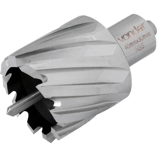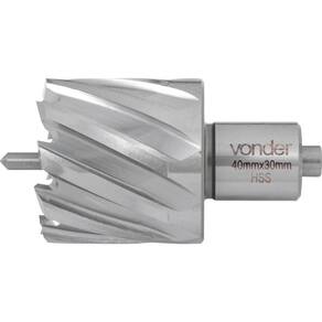 Ref. Fornecedor 5310040030Marca: VonderConteúdo da Embalagem:1 Broca anular. Acompanha: 1 pino guia/extrator de 6,35 mm x 77 mmDestaques e diferenciais:Proporciona corte macio e com bom acabamento, o encaixe padrão Weldon 19 mm garante perfeita fixação e segurançaAplicações e dicas de uso:Indicada para metais, desenvolvida para furadeiras de base magnéticaCaracterísticas Técnicas:Diâmetro da broca mm : 40,00 mm Comprimento total: 62,0 Comprimento útil da broca: 30,0 mm Tipo do encaixe: Weldon 19 mm Marca: Não Informado