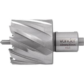 Ref. Fornecedor 5310042030Marca: VonderConteúdo da Embalagem:1 Broca anular. Acompanha: 1 pino guia/extrator de 6,35 mm x 77 mmDestaques e diferenciais:Proporciona corte macio e com bom acabamento, o encaixe padrão Weldon 19 mm garante perfeita fixação e segurançaAplicações e dicas de uso:Indicada para metais, desenvolvida para furadeiras de base magnéticaCaracterísticas Técnicas:Diâmetro da broca mm : 42,00 mm Comprimento total: 62,0 Comprimento útil da broca: 30,0 mm Tipo do encaixe: Weldon 19 mm Marca: Não Informado