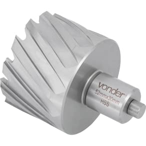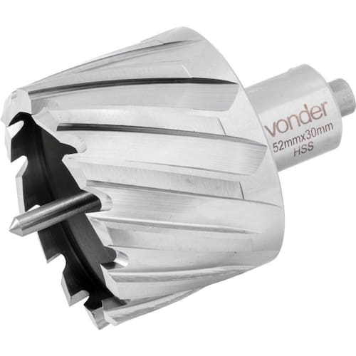 Ref. Fornecedor 5310052030Marca: VonderConteúdo da Embalagem:1 Broca anular. Acompanha: 1 pino guia/extrator de 6,35 mm x 77 mmDestaques e diferenciais:Proporciona corte macio e com bom acabamento, o encaixe padrão Weldon 19 mm garante perfeita fixação e segurançaAplicações e dicas de uso:Indicada para metais, desenvolvida para furadeiras de base magnéticaCaracterísticas Técnicas:Diâmetro da broca mm : 52,00 mm Comprimento total: 62,0 Comprimento útil da broca: 30,0 mm Tipo do encaixe: Weldon 19 mm Marca: Não Informado