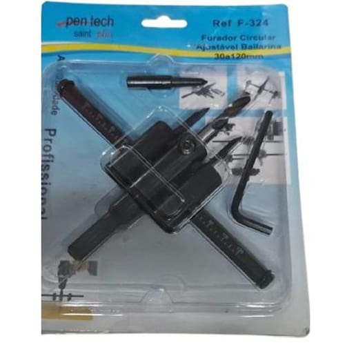 SERRA COPO BAILARINA 30MM A 120MM AJUSTÁVELCom essa serra broca bailarina você fará furos redondos perfeitos e limpos, sem complicações. Ideal para executarfuros em madeiras, laminados, gesso, plásticos, borrachas e outros materiais moles.Especificações Técnicas:• Material: Aço Carbono• Escala Métrica em Milímetro• Comprimento de 155mm• Altura de 145mm• Diâmetro de Furação: 30mm a 120mm• Profundidade Máxima do Corte de 25mModelo Bailarina AjustavelTipo de broca BailarinaTamanho da broca 120mm Marca: Pen Tech