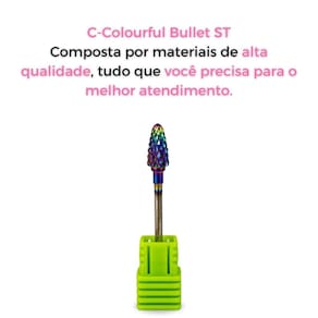 Características Principais: - Modelo: Broca C-Colouful Bullet ST; - Corte grosso; - Ótima durabilidade; - Acessa áreas difíceis sem machucar as unhas; - Para trabalhos delicados e cuidadosos.