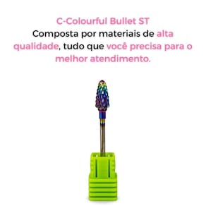 Características Principais: - Modelo: Broca C-Colouful Bullet ST; - Corte grosso; - Ótima durabilidade; - Acessa áreas difíceis sem machucar as unhas; - Para trabalhos delicados e cuidadosos.