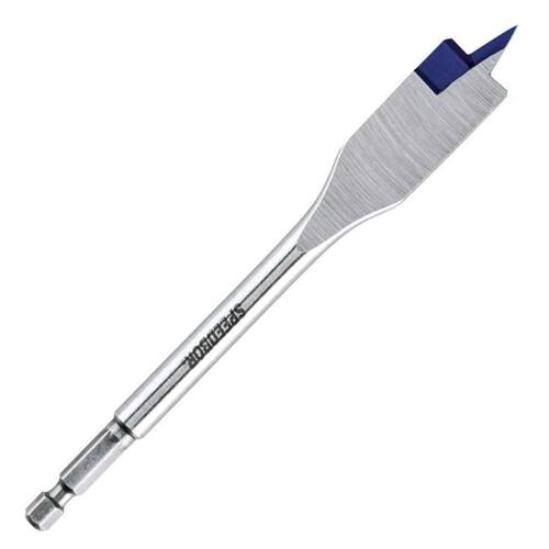 A aresta de corte BLUE GROOVE corta a madeira ao invés de raspar como as brocas chatas convencionais. Isso gera um cavaco maior, produzindo um corte mais limpo, rápido e com menor esforço. As esporas iniciam o contorno do furo antes que a madeira do centro seja removida, resultando num acabamento perfeito das bordas do furo