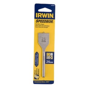 Broca chata Irwin Spdb Bg Bit Hg 101 6 x 26MM - Iw14334 Brocas uma com 26MM ? Afiação de corte Blue Goove: A aresta de cirte Blue Goove corta amadeira ao invés de raspar como as brocas chatas convencionais. Isso gera um cavaco maior, produzindo um corte mais limpo, rápido e com manor esforço. ? As esporas iniciam o contorno do furo antes que a madeira do centro seja removida, resultando num acabamento perfeito das bordas do furo. ? Haste 10% mais grossa, maior resistência contra empenamento, ao mesmo tempo em que proporciona maior estabilidade na furação. ? Permite que se coloque e que se retire a broca do mandril com agilidade, aumentando a produtividade nos trabalhos que exigem múltiplas ferramentas.