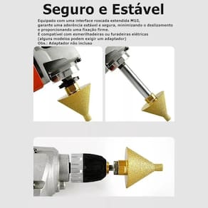 - Utilize para chanfrar furos em vidro, granito, mármore, pedras, cerâmica e porcelanato.