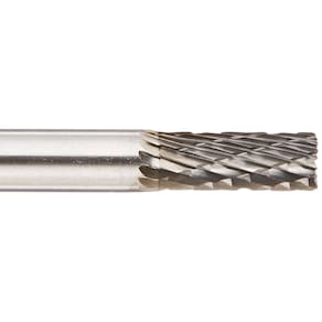 - Também chamadas de brocas trituradoras, rebarbas rotativas e limas rotativas, essas rebarbas são projetadas para limpar materiais em uma ampla ampla variedade de produtos, incluindo madeira, plástico, aço inoxidável e outros metais como níquel, ferro, aço para ferramentas e titânio - Número comercial SB-1 com formato cilíndrico de corte duplo - O estilo de corte duplo tem fileiras de dentes de corte cortados em dois que se cruzam instruções para remoção rápida de material e acabamento mais áspero