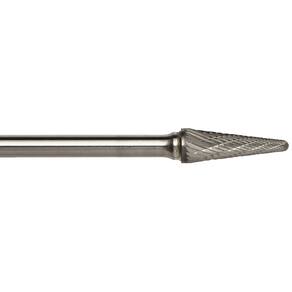 - Também chamadas de brocas trituradoras, rebarbas rotativas e limas rotativas, essas rebarbas são projetadas para limpar materiais em uma ampla variedade de produtos, incluindo madeira, plástico, aço inoxidável e outros metais, como níquel gel, ferro, aço, aço para ferramentas e titânio - Número comercial SL-3 em forma de cone - O estilo de corte duplo tem fileiras de dentes de corte cortados em duas direções de interseção para rápida remoção de material e um acabamento mais áspero