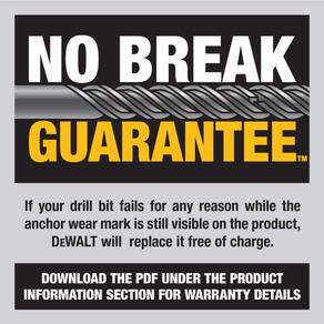 - O design da ponta de metal duro DEWALT maximiza o contato com a superfície do metal duro para maior vida útil da broca