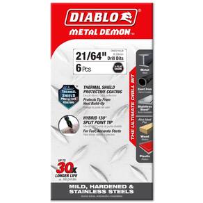 Broca Diablo Metal Demon com revestimento protetor térmico para aço macio, endurecido e inoxidável - 4,6" de comprimento, 21/64" de diâmetro, haste de 3 planos - DMD2164JB -