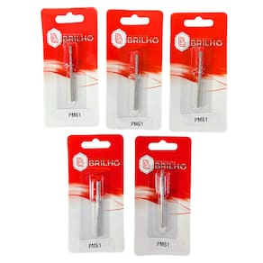 O kit contém 5 brocas diamantadas modelo PM 061 Brilho, no formato cilíndrico curto com topo plano. São indicadas para afastamento de cutículas, remoção de calosidades laterais e finalizações em curvaturas com precisão e segurança.