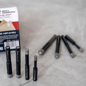 A Broca Diamantada 6mm 62128 - Cortag, é indicada para furar cerâmica, porcelanato, mármore, granito e pedras naturais a seco ou refrigerado com excelente acabamento. Principais Inovações: - Maior resistência à abrasão maior durabilidade . - Suporta altas temperaturas. - Possui uma cera incorporada para auto-refrigeração. - Não é necessário refrigerar em furos de até 15mm de espessura. - Melhor transmissão de força não gira em . - Especificações Técnicas: Dimensões do Produto: 6.02x6.02x67.9mm Peso: 0.015 g Material: Aço Carbono e Diamante Sintético Encaixe: Sextavado 8 mm Refêrencia: 62128 Marca: CortagA Broca Diamantada 6mm 62128 - Cortag, é indicada para furar cerâmica, porcelanato, mármore, granito e pedras naturais a seco ou refrigerado com excelente acabamento. Marca: Não Informado