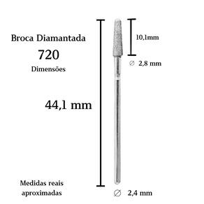 Dimensões aproximadas: comprimento total de 44,1 mm, ponta diamantada com 10,1 mm de altura, diâmetro da base de 2,8 mm e haste padrão universal de 2,4 mm.