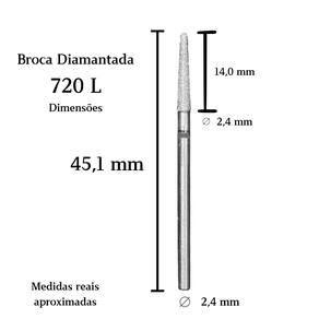 O kit contém 5 brocas diamantadas PM 720L Brilho, modelo cônico longo com ponta arredondada. Indicadas para trabalhos que exigem alcance maior e controle em áreas pequenas ou curvas, oferecendo toque suave e boa precisão durante o uso.