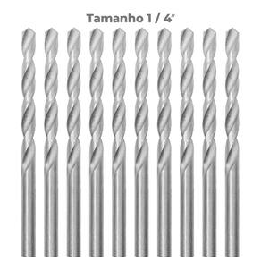 **Informações Técnicas:** - Diâmetro da Broca: 1/4” (6,35 mm) - Comprimento Total: 101 mm - Material: Aço Rápido (HSS) - Norma: DIN 338 - Aplicação: Perfuração em metais. - Ponta: Geometria otimizada para corte preciso - Velocidade Recomendada: Dependerá do material perfurado, mas geralmente alta para aço e metal.