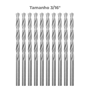 **Informações Técnicas:** - Diâmetro da Broca: 3/16” (4,76 mm) - Comprimento Total: 86 mm - Material: Aço Rápido (HSS) - Norma: DIN 338 - Aplicação: Perfuração em metais. - Ponta: Geometria otimizada para corte preciso - Velocidade Recomendada: Dependerá do material perfurado, mas geralmente alta para aço e metal.