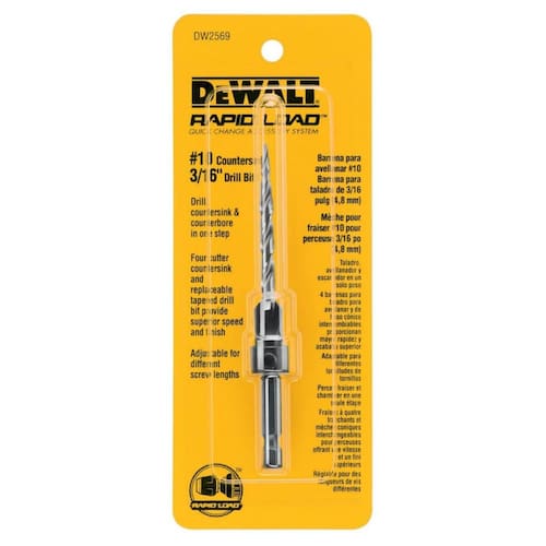 Escareador DeWalt DW2569 #10 de quatro cortadores com broca cônica de 3/16 polegadas - Perfure , escarear e perfurar em uma única etapa - Escareador de quatro cortadores e broca cônica oferecem velocidade superior e acabamento ideal - São oferecidas brocas cônicas de reposição