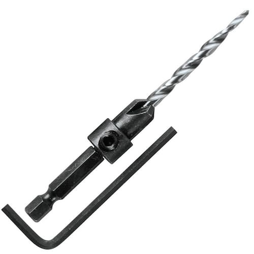 - Perfura orifícios-piloto, escareadores e rebaixos para parafusos nº 6 em uma operação fácil para um acabamento nivelado em madeira