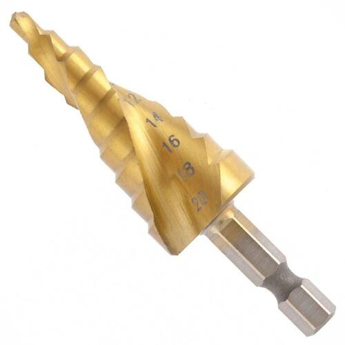 Características: - A Broca Escalonada da MTX é uma broca bem versátil sendo adequada para trabalhar com todos os tipos de furadeiras. - O encaixe de forma espiral facilita sua perfuração no metal. - Possui haste hexagonal assim ajudando a evitar o deslizamento do mandril. - Sua composição em aço grau HSS4241 de dureza 62-64 Hrc proporciona sua maior durabilidade e resistência do produto. - Utilizada em diversas áreas como: Metalúrgicas, Indústrias no geral, hobbistas, bricolagem, dentre outras áreas.