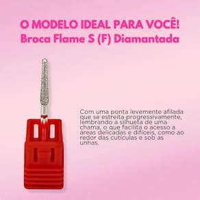 A broca de unhas Flame S F Diamantada é uma ferramenta utilizada em procedimentos de manicure e pedicure, especialmente em alongamentos de unhas e tratamentos de cutículas. Possui um formato de chama flame , com uma ponta levemente afilada que se estreita progressivamente, lembrando a silhueta de uma chama, o que facilita o acesso a áreas delicadas e difíceis, como ao redor das cutículas e sob as unhas. A broca diamantada é torna abrasiva, permitindo um desgaste preciso e eficiente, sem causar muito atrito ou desconforto. Ela é Utilizada para polir, limpar, remover calosidades e cutículas, e realizar acabamentos em detalhes nas unhas de forma segura. Garante precisão em áreas difíceis, sendo indispensável para profissionais.
